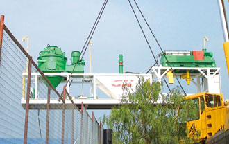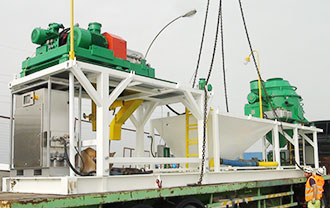 GNCM-40A整套泥漿不落地處理設(shè)備撬裝系統(tǒng)的總重量約為: 18.5 Tons ( 包含圖中所有設(shè)備)