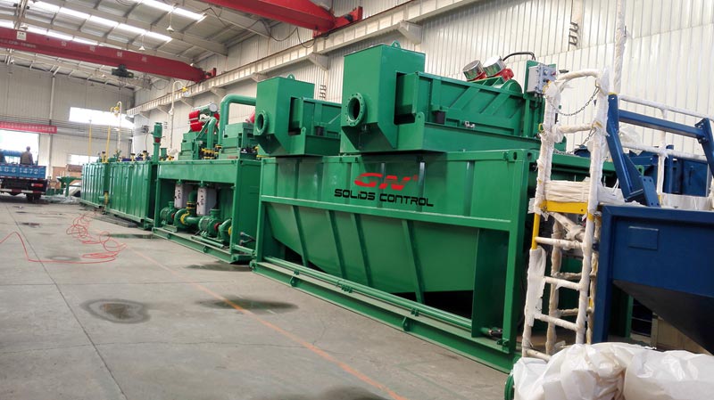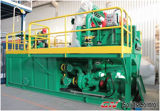 該套750HP鉆機泥漿固控系統的配置如下:1.本套750HP鉆機泥漿固控系統包括全部4級分離的全部固控設備:GNZS703E-HB鉆井液振動篩,GNZJ752E-2S除砂器,GNZJ752E-12N鉆井液除泥器和GNLW452臥螺式沉降鉆井液離心機。