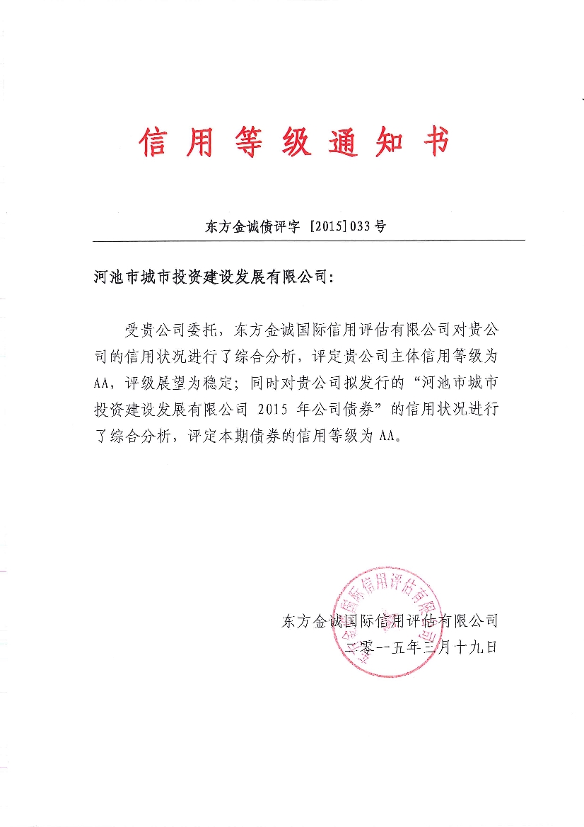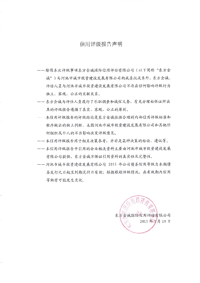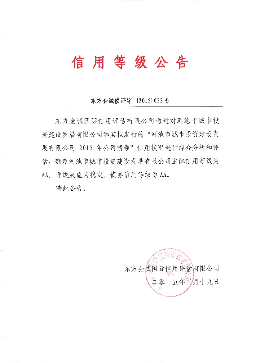 評級機構對河池市城投公司的評級報告